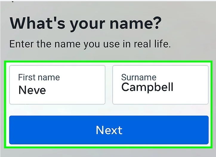 3.अपना नाम दर्ज करें और अगला टैप करें।