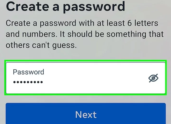 अगली स्क्रीन पर, एक ऐसा पासवर्ड टाइप करें जिसे आप याद रख सकें। आप अपने लिए एक सुरक्षित पासवर्ड बनाने के लिए पासवर्ड मैनेजर का इस्तेमाल कर सकते हैं। अपने चुने हुए पासवर्ड से संतुष्ट होने पर “अगला” पर टैप करें।